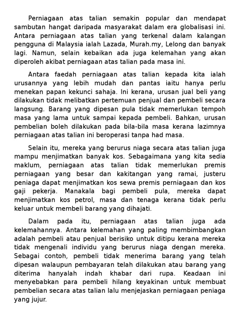 Karangan Kelebihan Dan Kelemahan Perniagaan Atas Talian Pdf